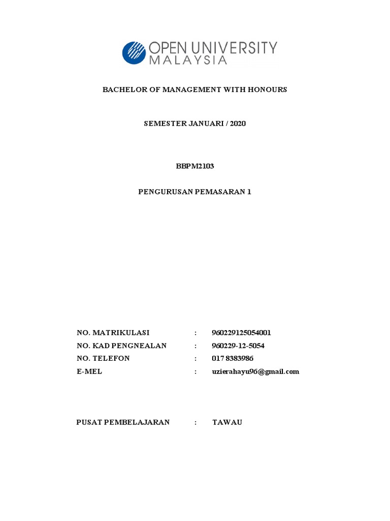 Tugasan Pengurusan Pemasaran 1 Semester January 2020 Pdf